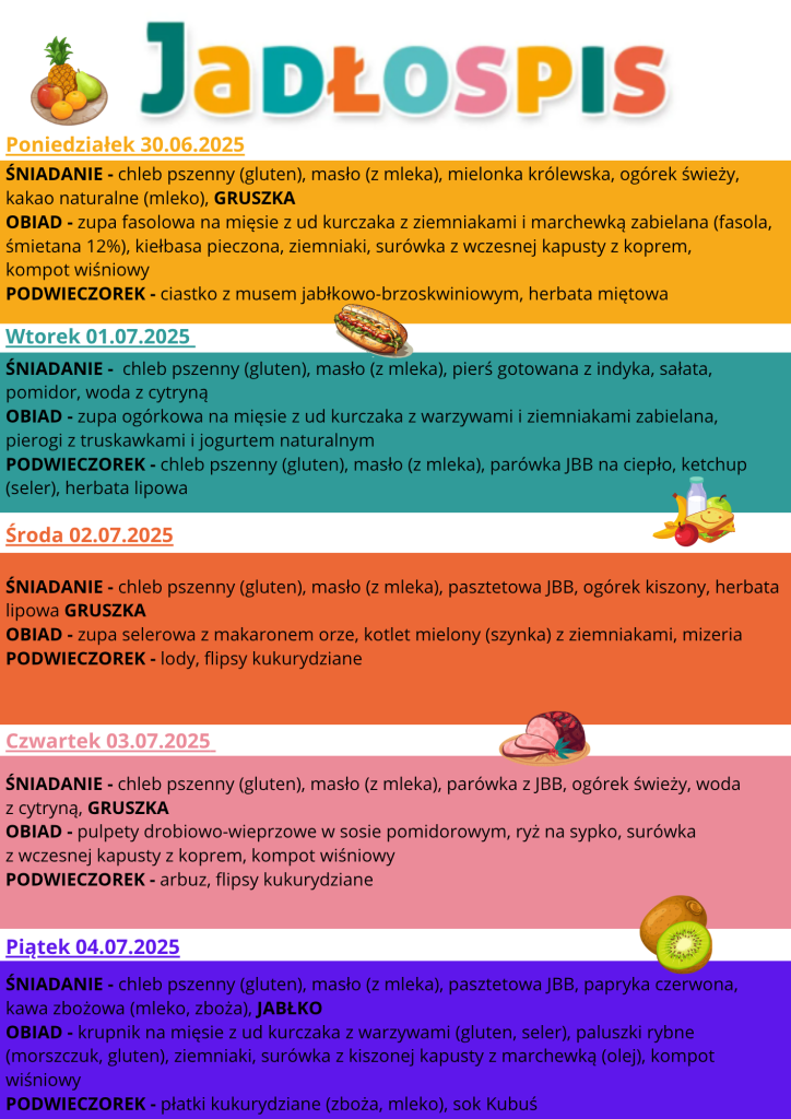 Jadłospis 30.06 do 04.07