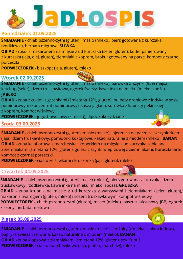 Jadłospis od 01.09.2025 do 05.09.2025 Post author:Karolina Piątkowska Post published:31 sierpnia, 2025 Post category:jadłospis Post comments:0 Komentarzy Może ci się spodobać również Jadłospis 05.05-09.05 5 maja, 2025 Jadłospis od 13.10 do 17.10 15 października, 2025 Jadłospis 28.07 do 31.07 28 lipca, 2025 Dodaj komentarz Anuluj pisanie odpowiedziCommentEnter your name or username to comment Enter your email address to comment Enter your website URL (optional) Zapamiętaj moje dane w tej przeglądarce podczas pisania kolejnych komentarzy.