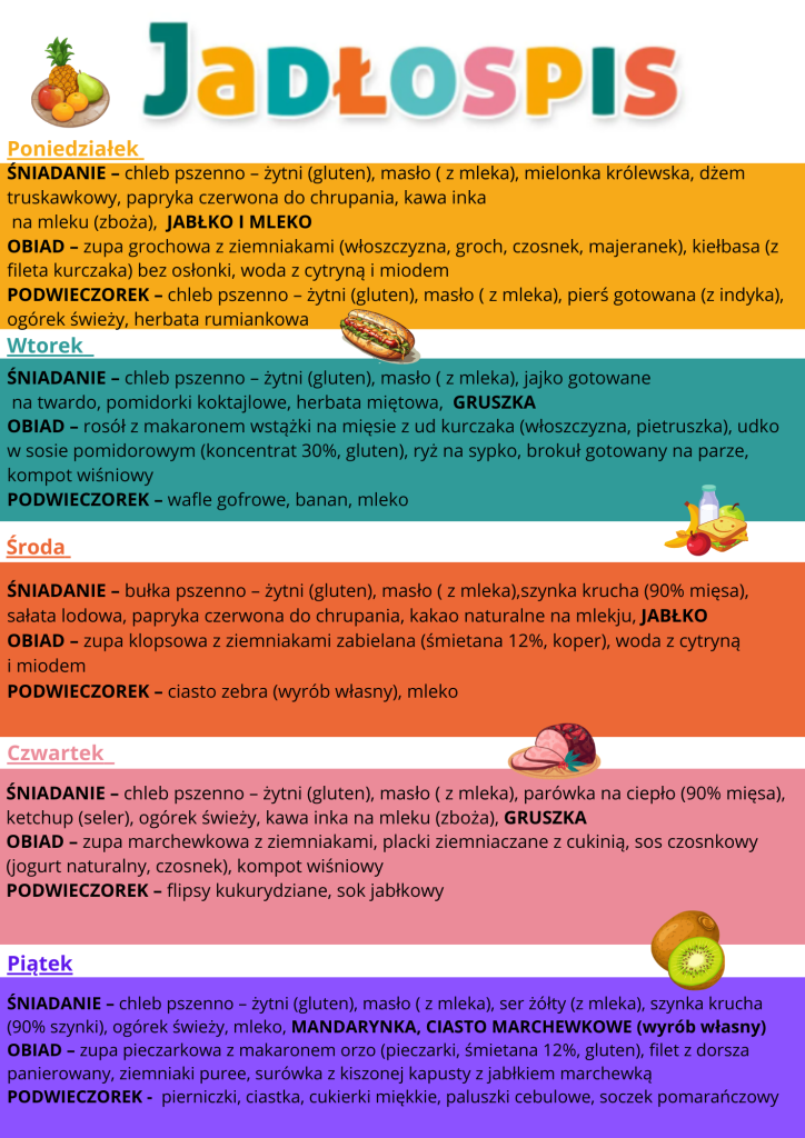 Jadłospis od 15.12 do 19.12