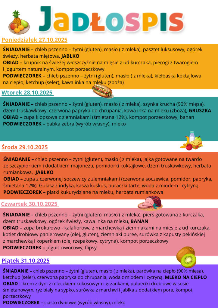 Jadłospis od 27.10 do 31.10