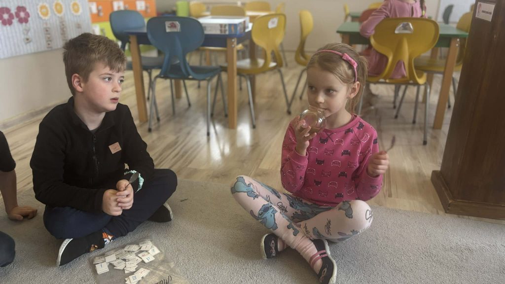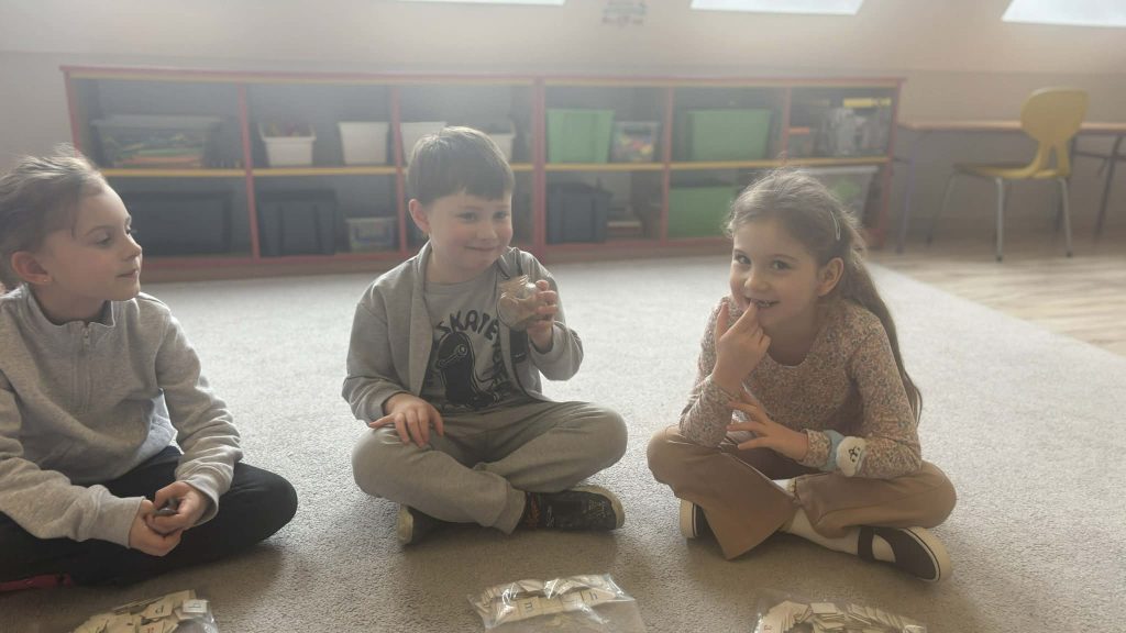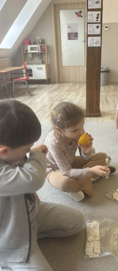 Na zakończenie zajęć przedszkolaki układały wyraz „cytryna”, utrwalając nową literę.