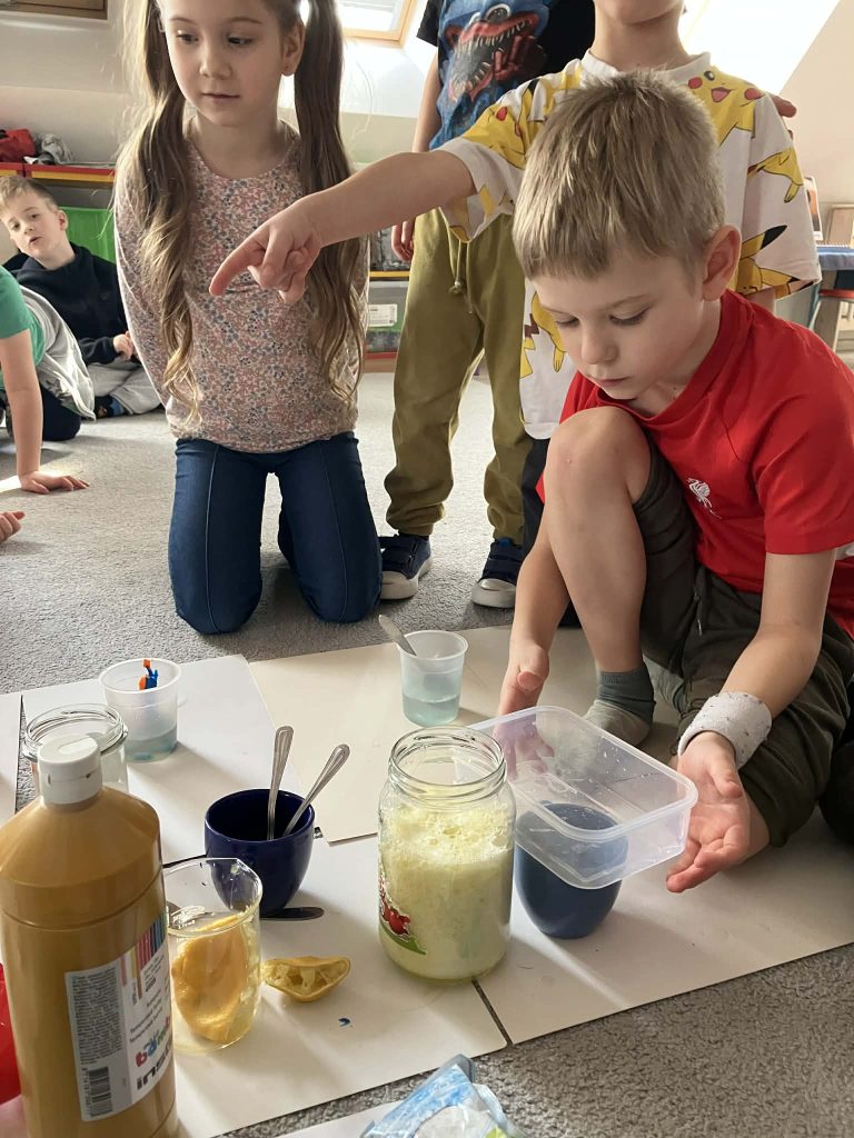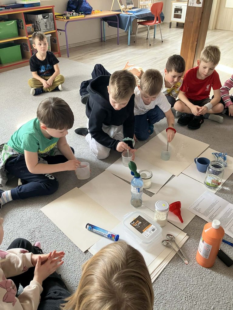 Słuchając muzyki Chopina, malowaliśmy włóczką farbą, tworząc wyjątkowe, kolorowe prace. A poznając twórczość Jana Matejki, wcieliliśmy się w rolę malarzy