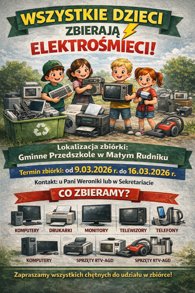 Nasze przedszkole bierze udział w akcji „Wszystkie dzieci zbierają elektrośmieci”.